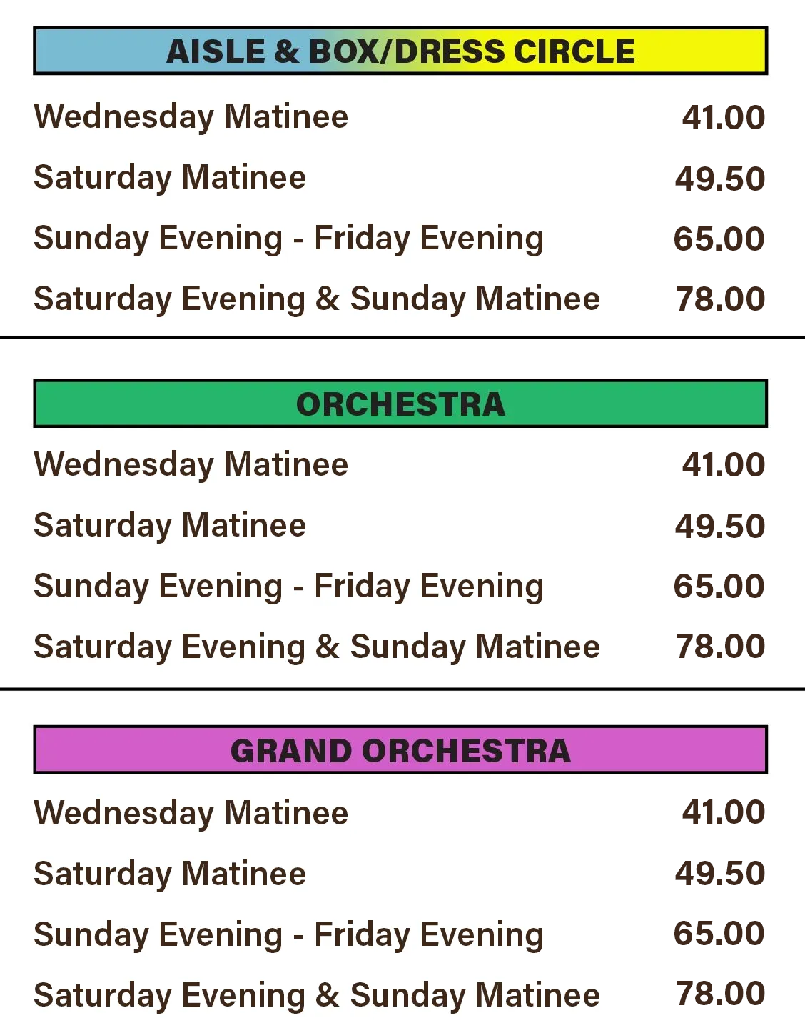 The meeting rooms are available prior to each performance from 11am - noon for matinees and from 5pm - 6:30pm for evening performances.